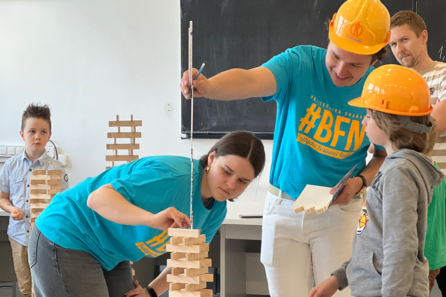 wyKOMBinuj mOst to ogólnopolski konkurs konstruktorski, w ramach którego uczestnicy projektują i budują przęsło mostowe o rozpiętości jednego metra, korzystając wyłącznie z papieru i kleju. Gotowe konstrukcje są następnie obciążane w maszynie wytrzymałościowej, a o zwycięstwie decyduje najlepszy stosunek nośności do masy. Najbliższa, 19. edycja konkursu odbędzie się w dniach 22–24 kwietnia. Do udziału w konkursie zapraszamy również uczniów szkół średnich. Termin zgłoszeń mija 15 marca. Pełen terminarz znajduje się tutaj.